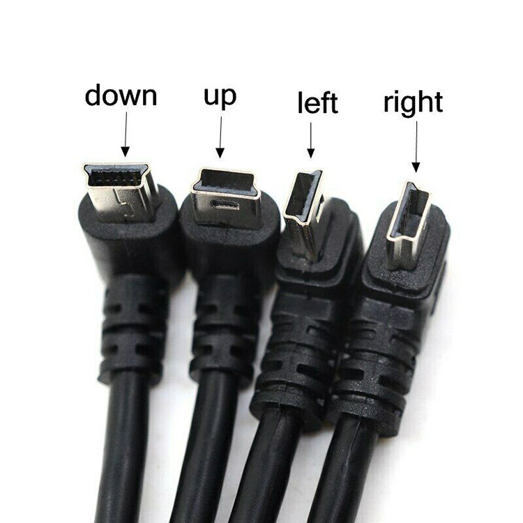 สายดาต้า USB 2.0 ชายต่อ Mini USB B Type 5 พิน แบบงอ 90 องศา ขึ้น & ลง & ซ้าย & ขวา