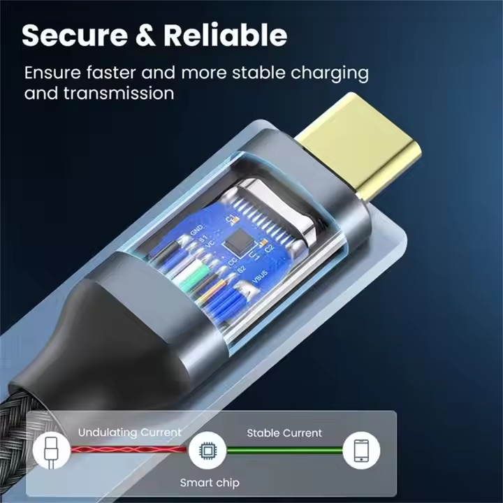 สาย USB C 3.2 Gen 2 แบบถักไนลอน รองรับความละเอียด 4K 60Hz ความเร็วการถ่ายโอนข้อมูล 20Gbps รองรับการชาร์จ PD 100W สำหรับ iPhone Samsung และจอภาพ