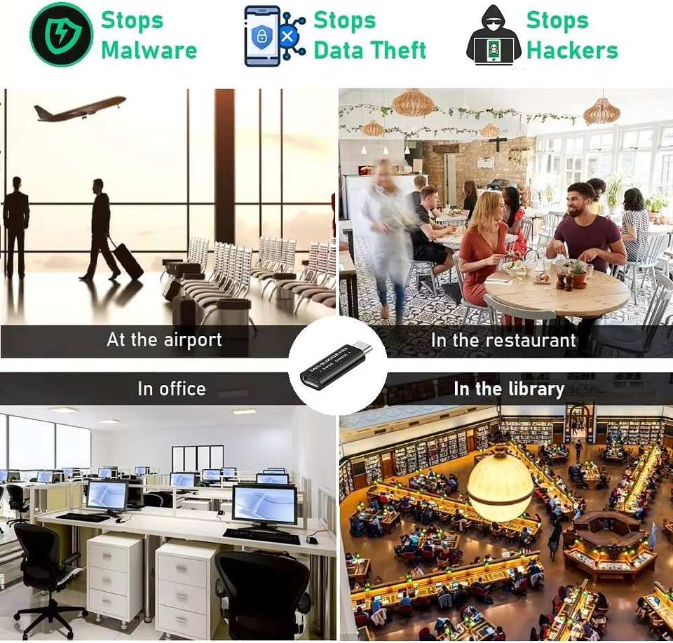 ตัวบล็อก USB C Pro อะแดปเตอร์ป้องกันการถ่ายโอนข้อมูลแบบเร็วสำหรับโทรศัพท์มือถือและแท็บเล็ต ป้องกันการถ่ายโอนข้อมูลที่ไม่ต้องการ