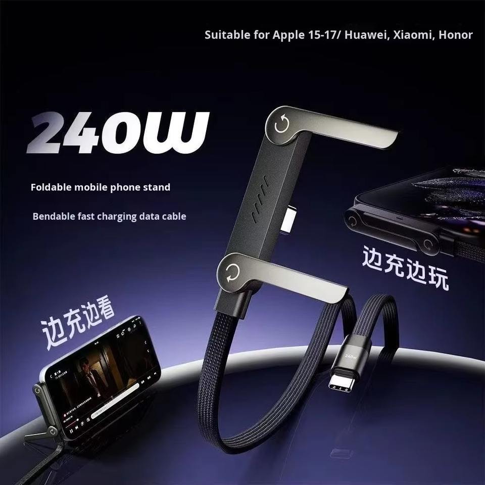 USB C Charging Cable with Phone Stand Multifunction 240W Fast Charge Data Cable Custom Logo Bulk for Corporate Gift Office