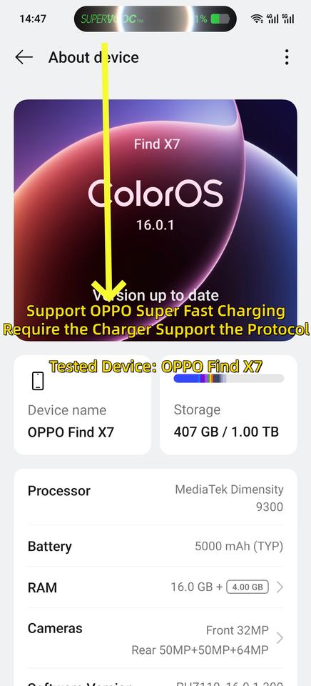 สายชาร์จเร็ว USB-C สำหรับออปโป้ วีโว่ เรียลมี วันพลัส 100W ซูเปอร์วูค, 66W แฟลชชาร์จ, รองรับการใช้งานหลายรุ่น