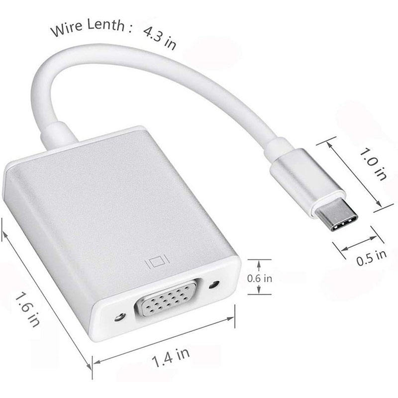 อะแดปเตอร์แปลง USB C ตัวผู้ เป็น VGA ตัวเมีย USB 3.1 Type C เป็น VGA สำหรับ MacBook Chromebook Samsung Galaxy S9/S8