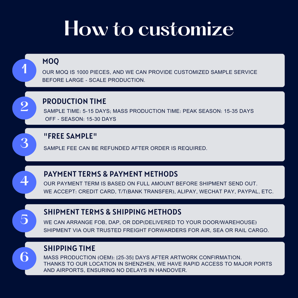 Customization:Customizable appearance, aluminum casing, cable, functions, colors