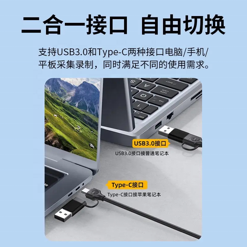 USB-C เป็นการ์ดจับภาพวิดีโอแบบ HDMI USB3.0 TYPE-C เครื่องบันทึกการเล่นเกมและการสตรีมสด
