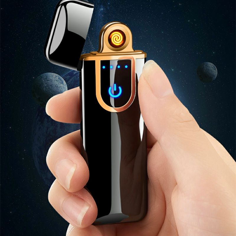 ไฟแช็คโลหะกันลมแบบชาร์จ USB ดีไซน์สร้างสรรค์ พร้อมระบบสัมผัสลายนิ้วมือ ไฟ LED และขดลวดความร้อน เหมาะสำหรับเป็นของขวัญทางธุรกิจ