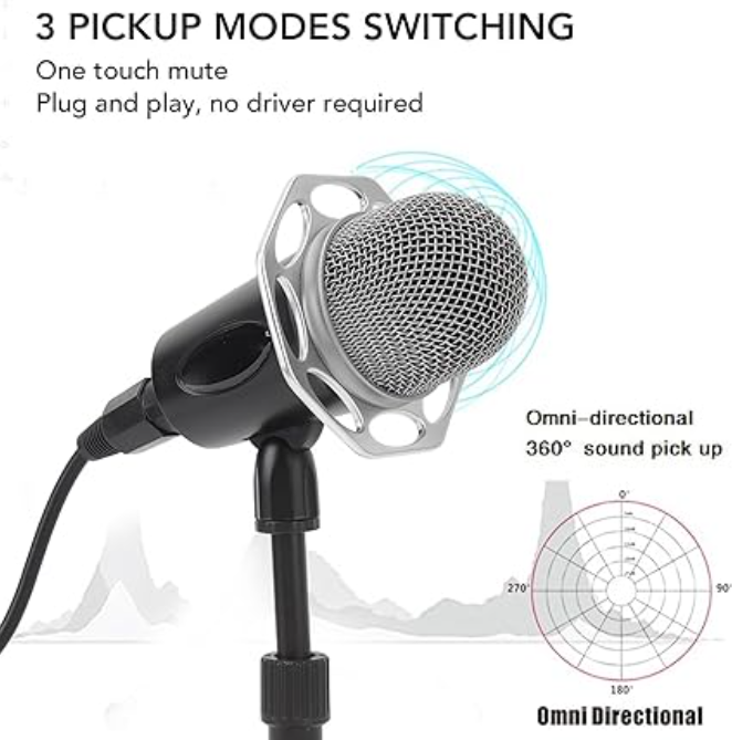 ไมโครโฟนคอนเดนเซอร์แบบ USB แบบมีสายคาร์ดิโอด์น้ำหนักเบาแบบพกพา ตอบสนองความถี่ 50Hz-16KHz สำหรับการประชุมการเล่นเกมบนคอมพิวเตอร์