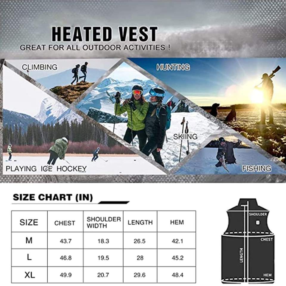 แจ็กเก็ตอุ่นไฟฟ้า USB, แจ็กเก็ตอุ่นด้วยไฟฟ้าให้ความร้อนสำหรับกลางแจ้งตั้งแคมป์ตกปลาเล่นสกี