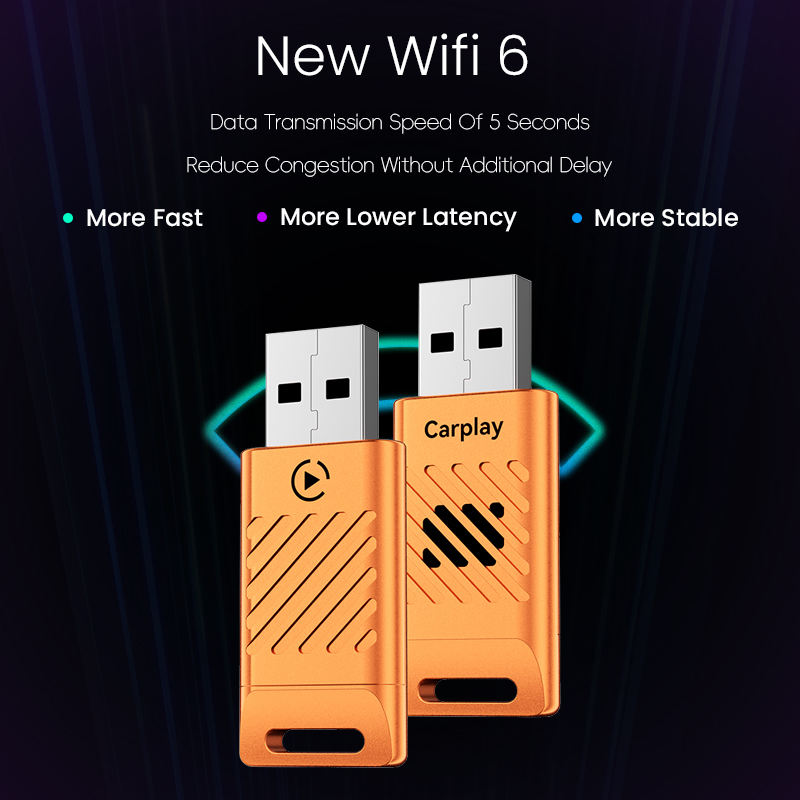 อะแดปเตอร์ CarPlay Android แบบมีสายและไร้สายขนาดเล็กทำจากโลหะ USB WiFi6บลูทูธกระจายความร้อนร่องเสียบปลั๊ก-N-Play แบบมีรูแขวน