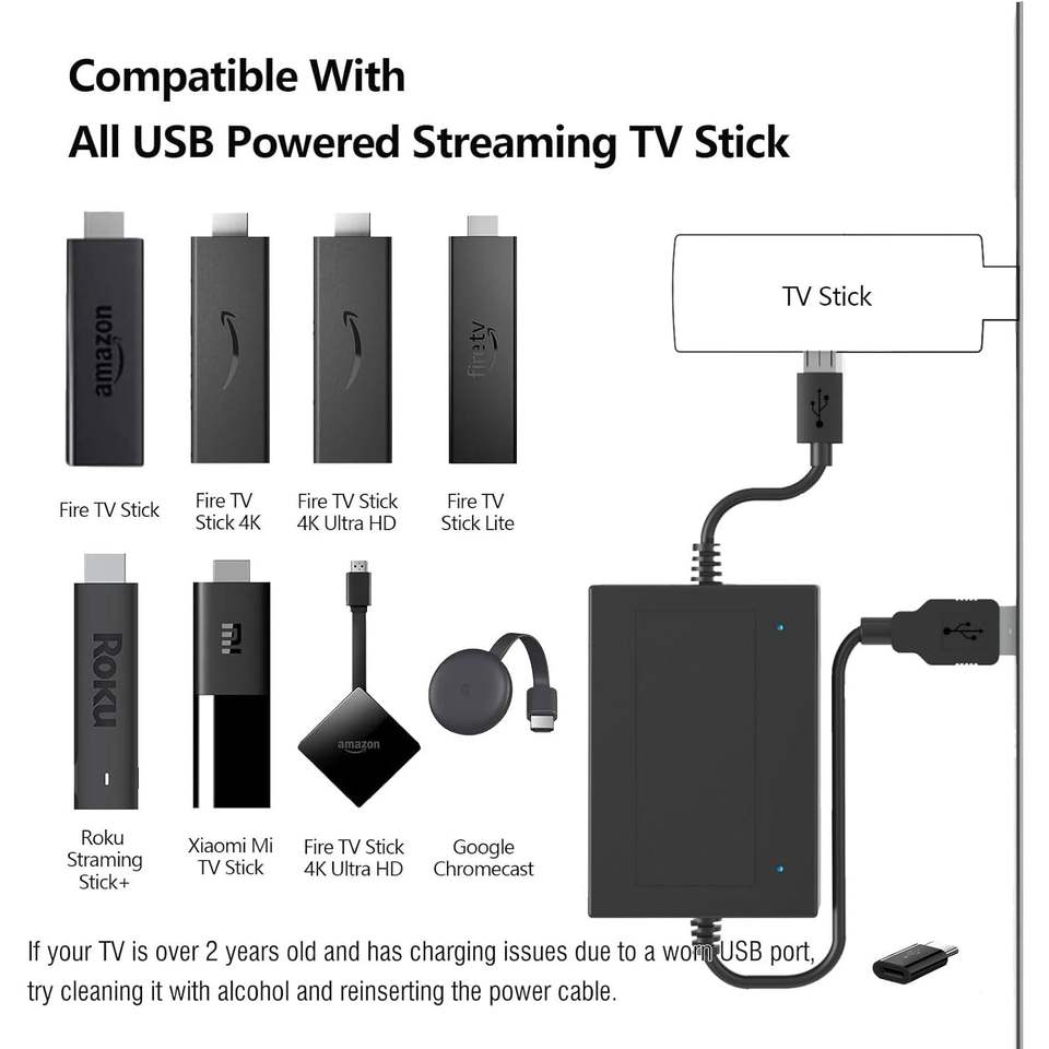 สายไฟ USB ใช้ได้กับทีวีไฟ Fire TV Stick 4K maxchromecast Micro/USB C TV สตรีมมิ่งเครื่องเล่นวิดีโออื่นๆ