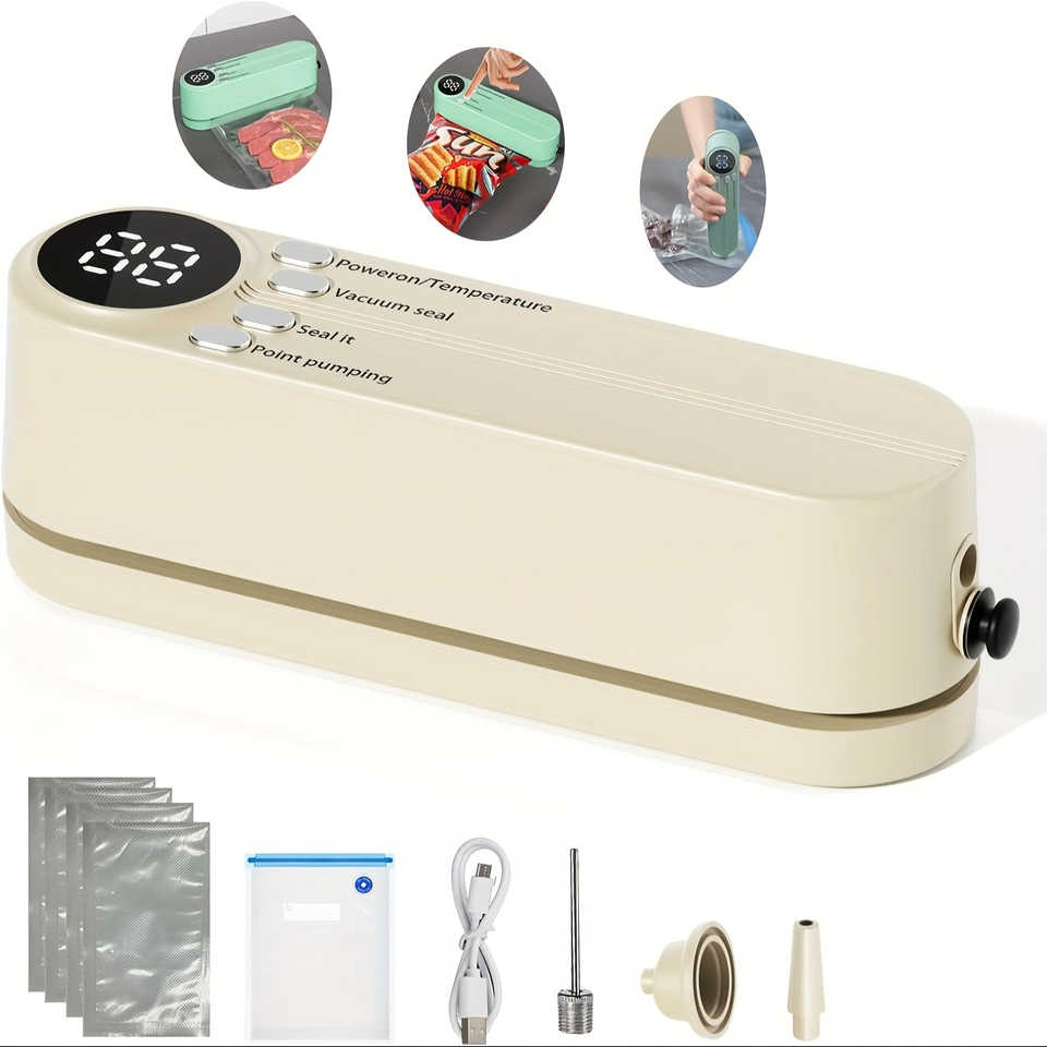เครื่องซีลสูญญากาศแบบชาร์จ USB แบตเตอรี่ 1200mAh อเนกประสงค์ ประหยัดพื้นที่ ใช้กับถุงพลาสติกสำหรับอาหาร ใช้ได้ทั้งในบ้านและนอกบ้าน