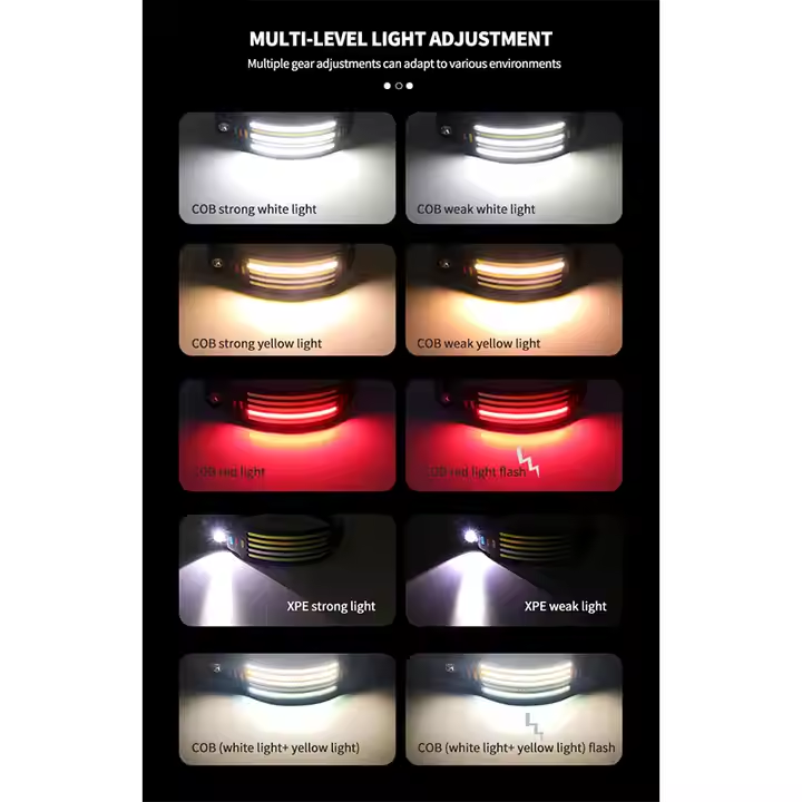 ไฟหน้า LED แบบคาดศีรษะชาร์จไฟได้ USB สำหรับตั้งแคมป์แบบผสมผสาน IP44Waterproof กันภายใต้อุณหภูมิสีดำ