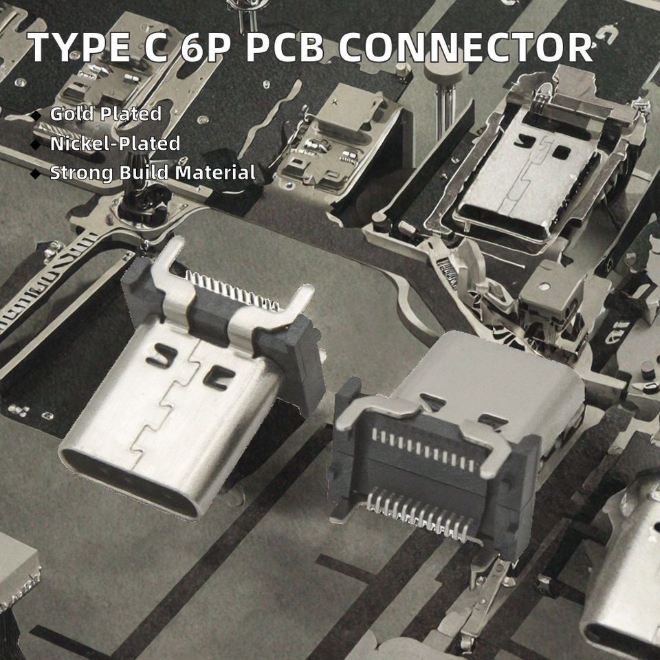 คอนเนคเตอร์ตัวเมีย Type C 6 พิน แบบติดตั้งแนวตั้ง