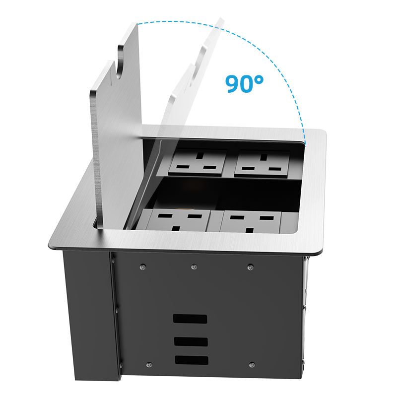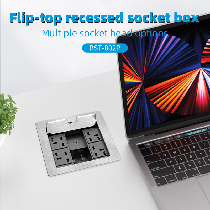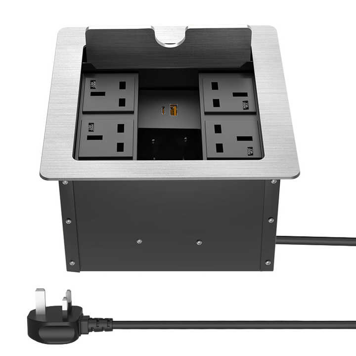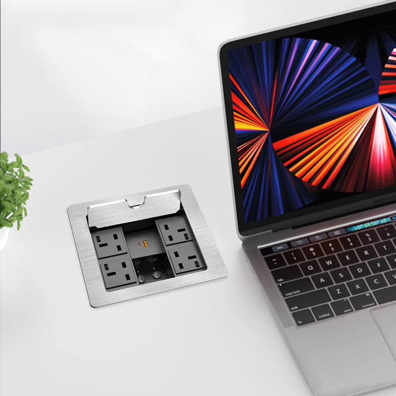 เต้ารับไฟฟ้าแบบฝังในโต๊ะ USB Type-C แบบพับเก็บได้ วัสดุอะลูมิเนียม มาตรฐาน UK กล่องเต้ารับไฟฟ้าอเนกประสงค์ ปลั๊กไฟฟ้าแบบตั้งโต๊ะ
