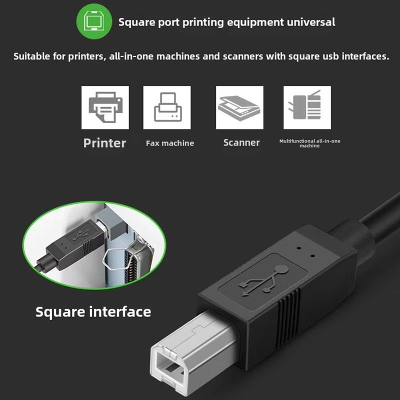 สายเคเบิลเครื่องพิมพ์โทรศัพท์มือถือ USB Type-C วัสดุ PVC ใช้ได้กับ HP Canon Lenovo Samsung Brother Epson สำหรับกล้อง สมาร์ทวอทช์ คอมพิวเตอร์