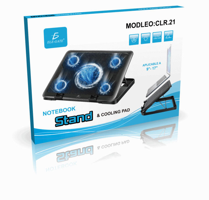 แผ่นรองระบายความร้อนสำหรับแล็ปท็อป ELE-GATE USB-Voltage พร้อมขาตั้งพลาสติกและพัดลม 5 ตัว สำหรับแล็ปท็อปเล่นเกม พร้อมที่วาง - มีสินค้าในสต็อก