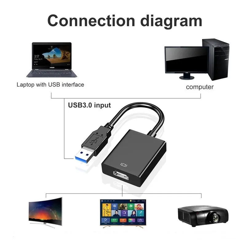 สายแปลงพอร์ต USB 3.0เป็น HDTV สำหรับทีวี USB3.0อะแดปเตอร์กราฟิกภายนอกสำหรับทีวี LCD ฟรีไดรเวอร์