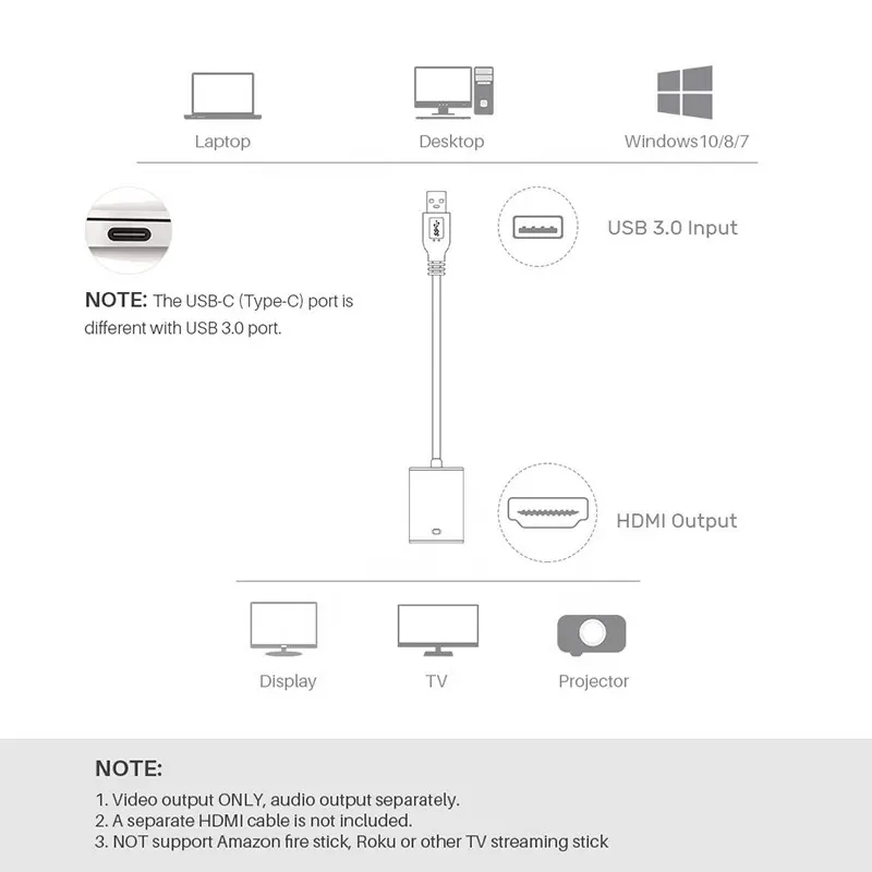 USB ไปยัง HDMI, HDTV, HDMIConnector Type:
