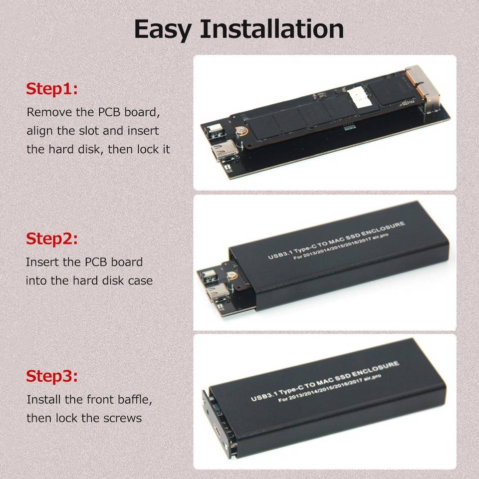 USB3.1 Type-C to Mac SSD Enclosure Aluminum Alloy Hard Disk Case Compatible with 2013/2014/2015/2016/2017 MacBook Air/Pro/Retina