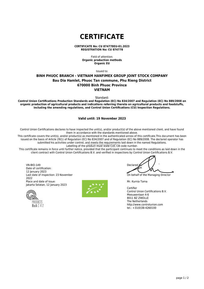 การรับรอง:BRC เกรด A, ออร์แกนิก, SMETA, ISO, FAIRTRADE