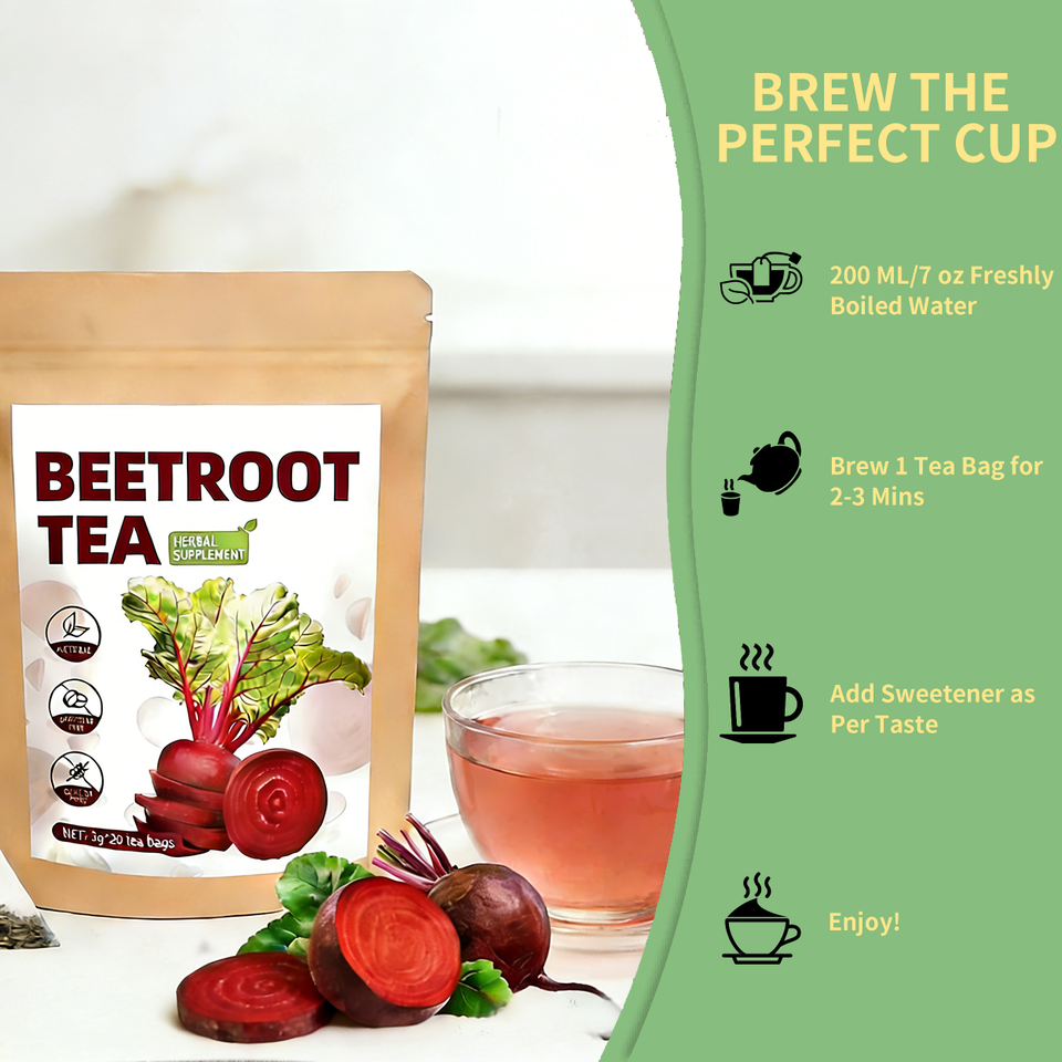 ชาบีทรูทออร์แกนิกสด USDA ช่วยเพิ่มพลังงาน บำรุงหัวใจ เสริมภูมิคุ้มกัน คุณภาพสูง สำหรับผู้ใหญ่ 3 กรัม*20 ซองชาใยข้าวโพด