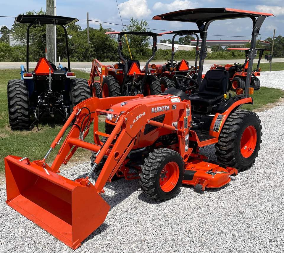 รถแทรกเตอร์มือสอง 23HP KUBOTA B2320 พร้อม LA304 รถตักหน้าและเครื่องตัดหญ้าที่มีอยู่