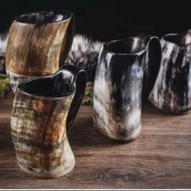 โดยใช้นอร์สแก้วมักลายควายฮอร์นไวกิ้งดีไซน์ใหม่สำหรับดื่มเบียร์และกาแฟแบบธรรมชาติ