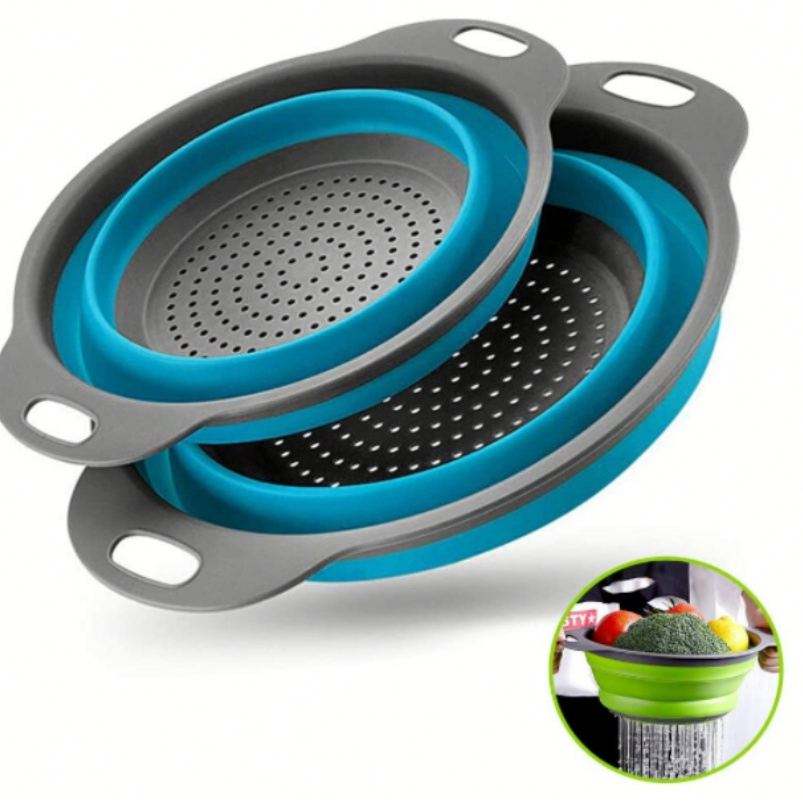 ชุดกระชอนซิลิโคน2ชิ้นแบบพับได้ชุดตะกร้า usse