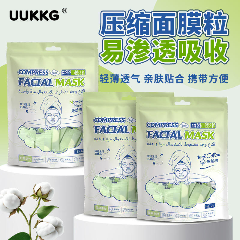 UUKKG ผงมาส์กหน้าอัดเม็ด 50 ชิ้น 100 ชิ้น ผ้าไม่ทอ ช่วยเพิ่มความชุ่มชื้น สำหรับใช้ในร้านเสริมสวย สปา หรือทำเองที่บ้าน