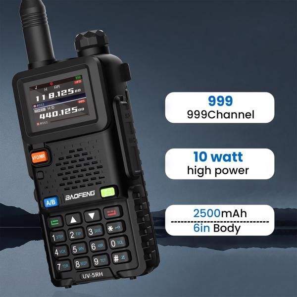 UV-5RH 10W GMRS Portable Ham Radio Long Range Walkie Talkie 999 Channels Multifunctional Use USB-C Charging Colorful LCD