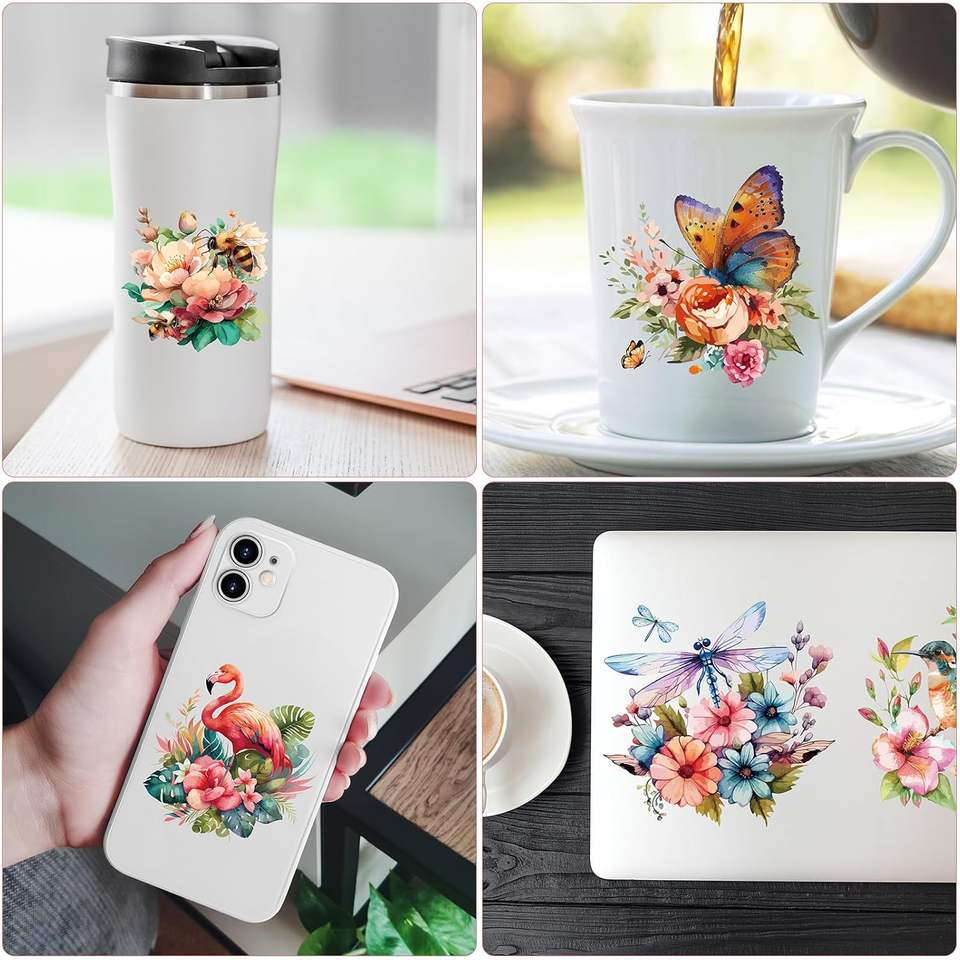 สติกเกอร์แบบถ่ายโอน UV DTF 20 แผ่น ลายวินเทจ นก เต่าทอง ผึ้ง แมลงปอ ดอกไม้ สำหรับติดบนแก้ว ขวดน้ำ งาน DIY