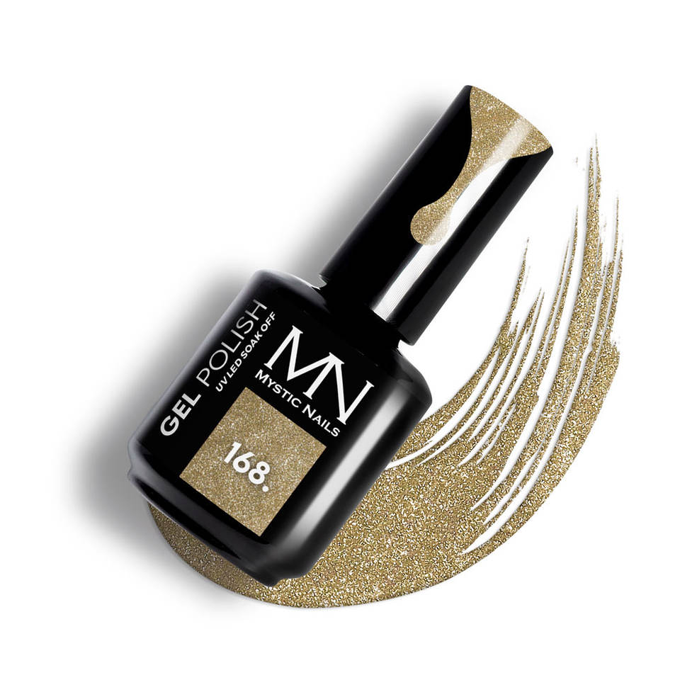ยูวีแอลอีดีเจลสีทา-ผลิตในยุโรป-cpnp-168สีทอง-เจลขัดเงา12มล.-เล็บลึกลับ