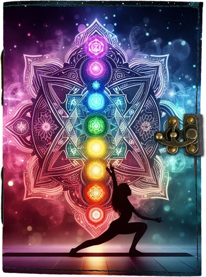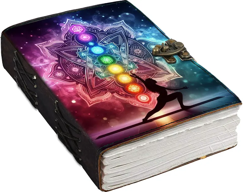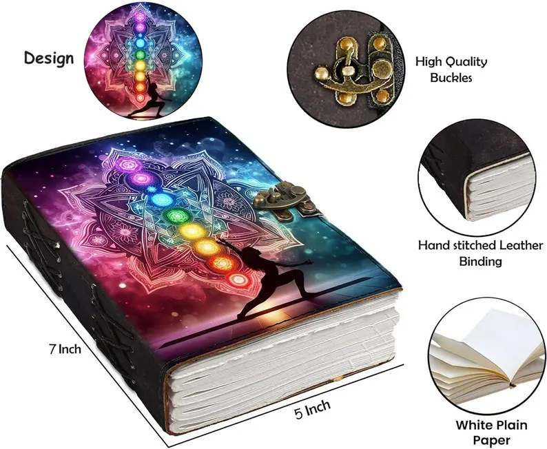 สมุดบันทึกหนังพิมพ์ลายยูวี ลายมันดาลา จักระ โยคะ สมุดบันทึกสไตล์โบโฮ สมุดบันทึกจิตวิญญาณ สมุดบันทึกการทำสมาธิและมายด์ฟูลเนส