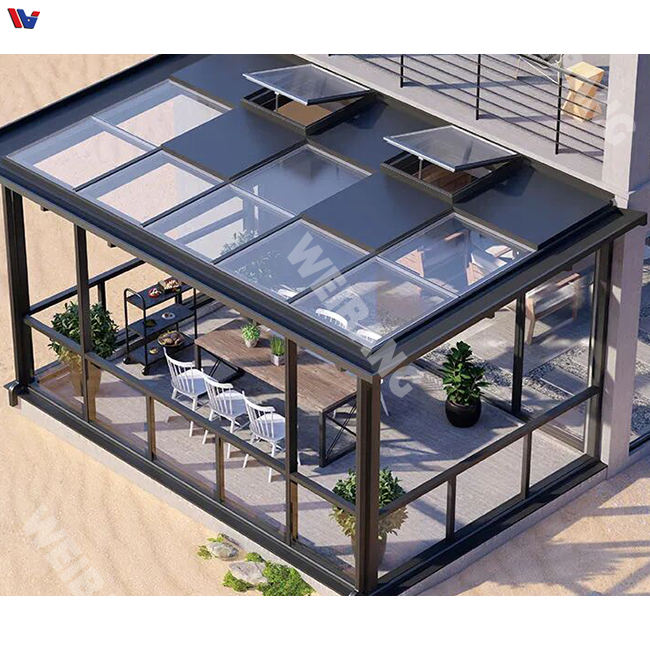 บ้านกันแดดทันสมัยพร้อมฉนวนกันรังสียูวีและแผงโซลาร์เซลล์ สำหรับใช้ในพื้นที่อยู่อาศัย ลานบ้าน สำนักงาน อาคาร และโรงเรียน ขนาดสั่งทำได้