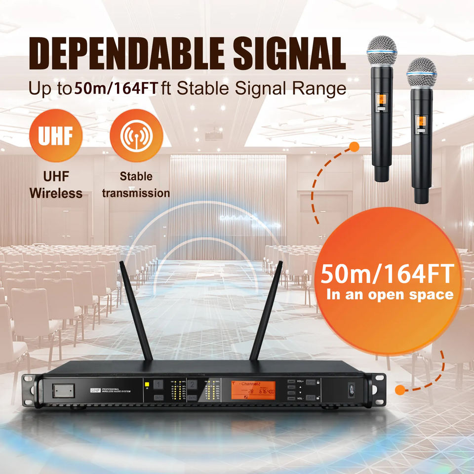 ไมโครโฟนแบบไดนามิกสำหรับชุดหูฟัง UX22 Professional ระยะ 50 เมตร แบบพกพา ระบบไร้สาย UHF 2 ช่องสัญญาณ พร้อมระบบตัดเสียงรบกวน วัสดุพลาสติกและโลหะ