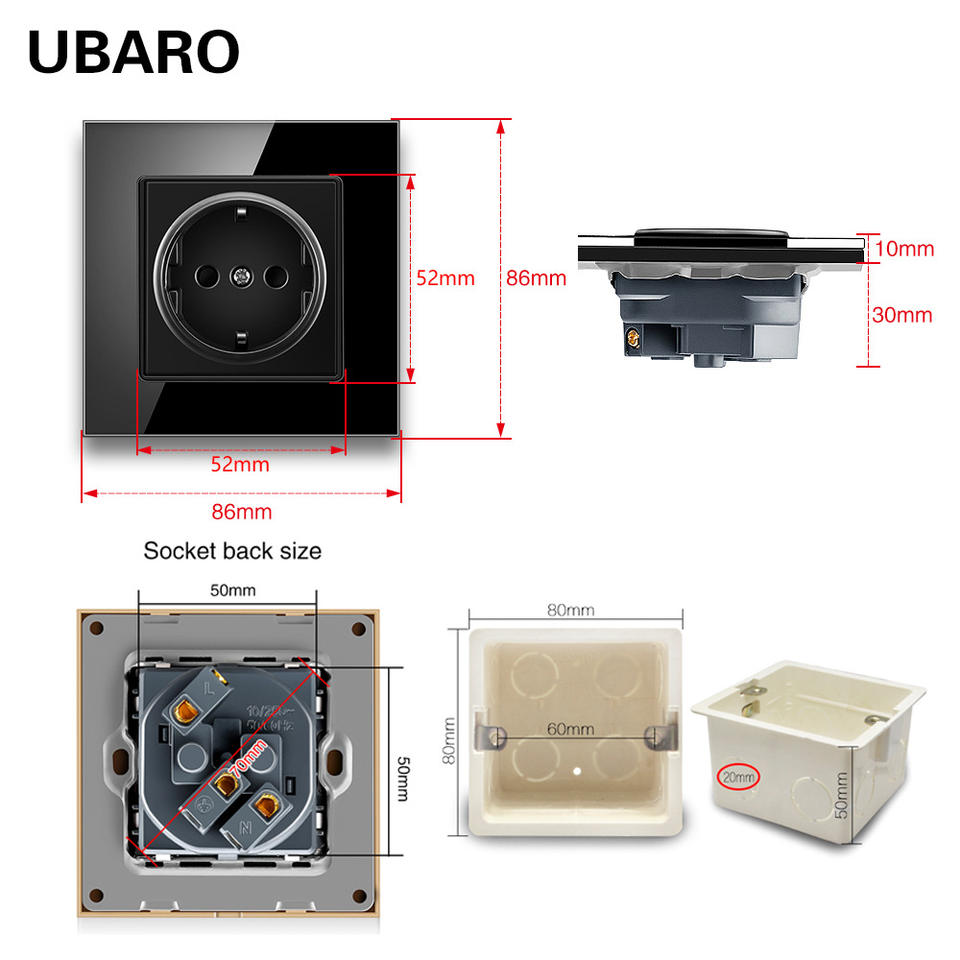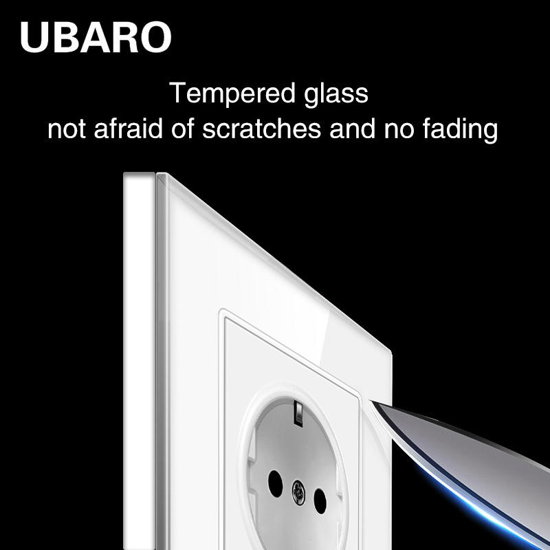 อูบาโร 86 ประเภทเต้ารับติดผนังมาตรฐานยุโรป 16A แผงกระจกนิรภัย เต้ารับทรงสี่เหลี่ยมสำหรับใช้ในครัวเรือน