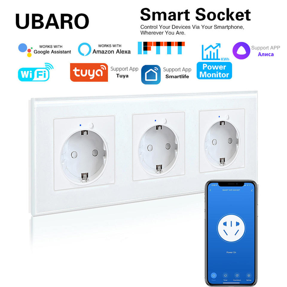 ยูบาโร่สมาร์ทซ็อกเก็ตปลั๊ก EU 16A รีโมทคอนโทรลแบบ Wifi ตัวตั้งเวลาควบคุมด้วยเสียง พร้อมระบบตรวจสอบพลังงาน