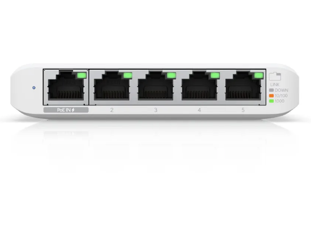 Ubiquiti สวิตช์ USW-Flex-MINI UniFi, 5X RJ45 1000เมกะไบต์/วินาที, 1x POE IN