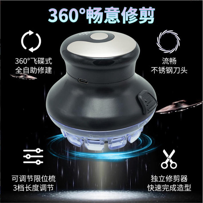 เครื่องตัดขนยูเอฟโอแบบไฟฟ้าสำหรับผู้ชาย ปรับความยาวได้ จอแสดงผล LED กันน้ำ IPX7 ใช้พลังงานแบตเตอรี่ ชาร์จได้ ใช้งานได้นาน 3-6 ชั่วโมง