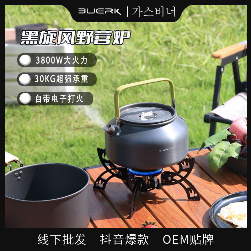 เตาแก๊สพกพา UFO สำหรับตั้งแคมป์กลางแจ้ง พับได้ กันลม กำลังไฟสูง เตาชงชา สีดำ สำหรับ 1-2 คน