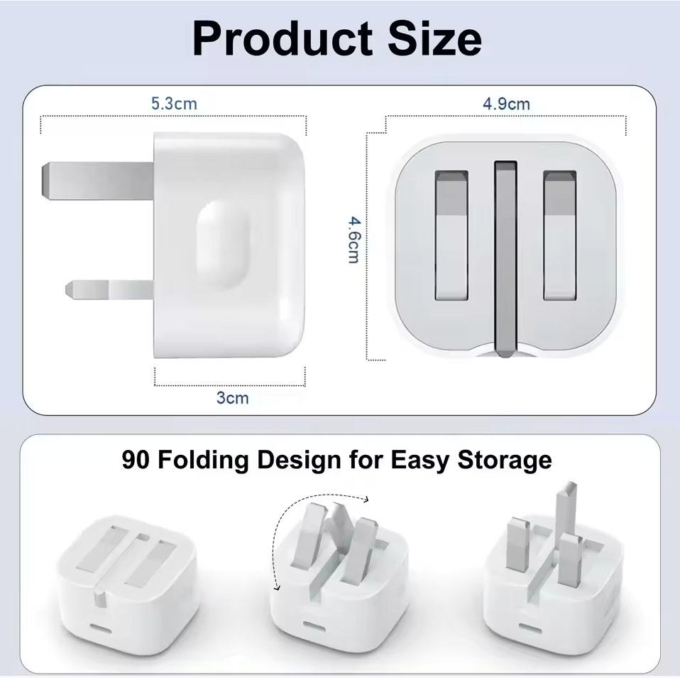 แท่นชาร์จ USB-C PD UK 20W สำหรับชาร์จ iPhone พร้อมสายเคเบิลอะแดปเตอร์ติดผนังสำหรับ Apple Type-C Combo สำหรับ iPhone 17 16 15 14 13 PRO MAX
