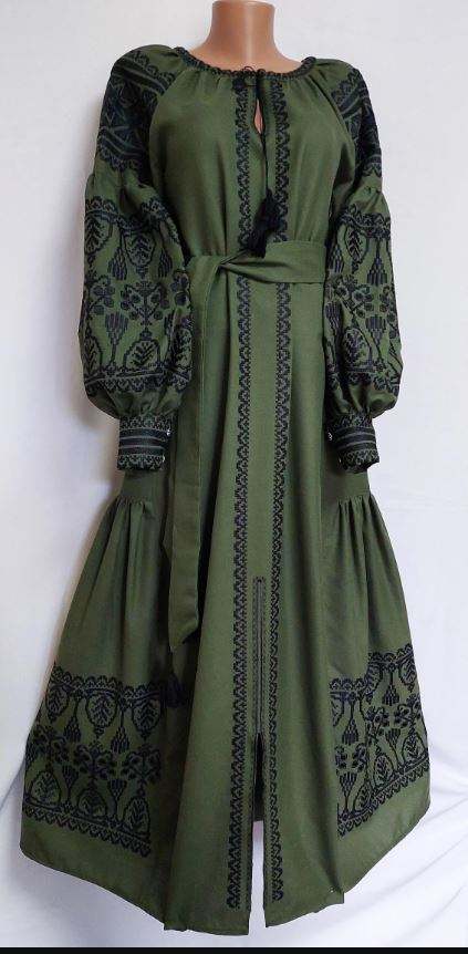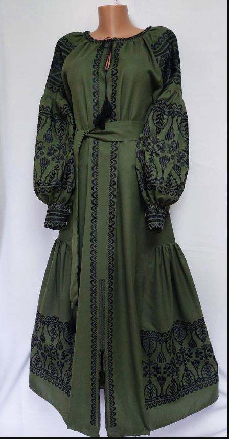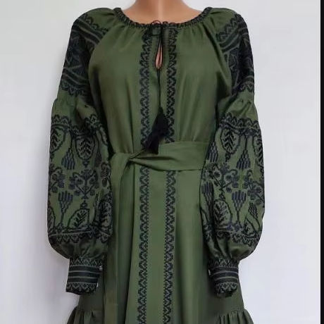 ชุดเดรสแขนยาวผ้าลินินคอวีลายดอกไม้สไตล์โบฮีเมียนของยูเครนชุดเดรสคอวีปักลายท้องฟ้าระบายอากาศด้านหลังสำหรับฤดูใบไม้ร่วง
