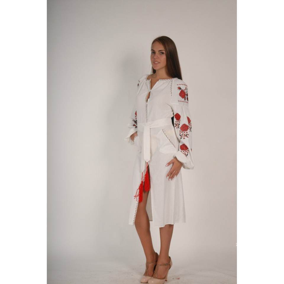 เดรสยาวคลุมเข่าแขนยาวปักลายยูเครน