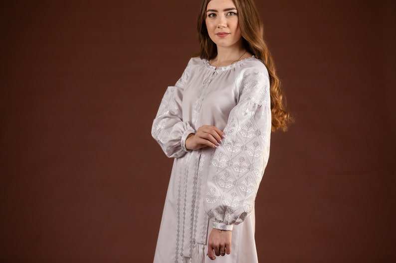 ชุดแต่งงานขนาดเล็กสีขาวยูเครนแบบวินเทจปักลายดอกไม้ทำจากผ้ากำมะหยี่ธรรมชาติมรดกชาวสลาฟ