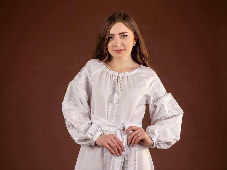 ชุดแต่งงานขนาดเล็กสีขาวยูเครนแบบวินเทจปักลายดอกไม้ทำจากผ้ากำมะหยี่ธรรมชาติมรดกชาวสลาฟ