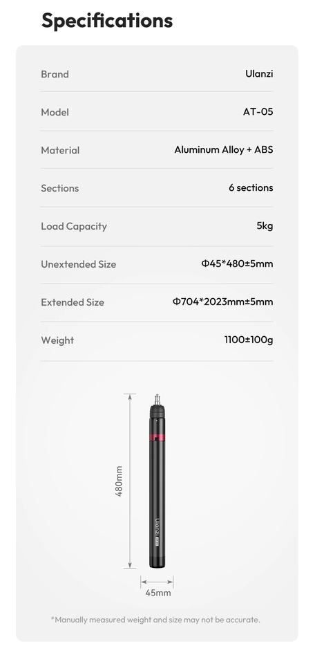 ชื่อผลิตภัณฑ์:Ulanzi AT-05 2M ขาตั้งกล้องแบบพับได้สำหรับงานหนัก
