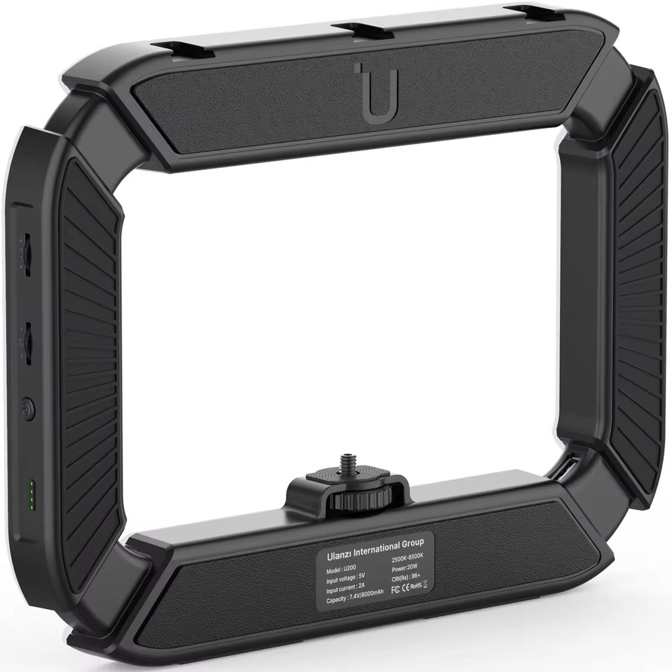 Ulanzi อุปกรณ์วิดีโอสมาร์ทโฟน U-200, มีไฟ LED 2-in-1ไมโครโฟนฐานเสียบแบบเย็นสำหรับ TikTok YouTube แท่นขุดเจาะสำหรับถ่ายภาพสด
