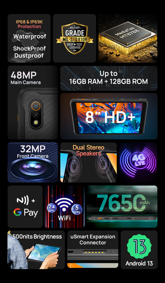 ลักษณะ:กันน้ำ, กันกระแทก, ป้องกันฝุ่นละออง, ฮาร์ด