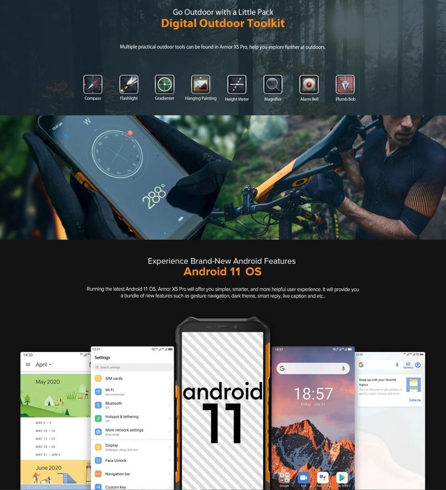 Ulefone โทรศัพท์มือถือ X5 Pro, สมาร์ทโฟน3G & 4G 5.5 "สมาร์ทโฟน5G 4GB + 64GB OCTA Core 13MP โทรศัพท์ทนทาน5000mAh