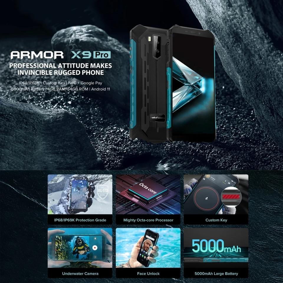 โทรศัพท์มือถือ Ulefone Armor X9 Pro รองรับ 3G&4G สมาร์ทโฟนหน้าจอ 5.5 นิ้ว สมาร์ทโฟน 5G แรม 4GB+64GB Octa Core แบตเตอรี่ 5000mAh โทรศัพท์มือถือที่ทนทาน