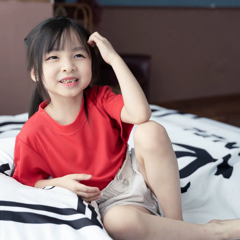 Ultifresh เสื้อยืดคอกลมแขนสั้นสำหรับเด็ก, เสื้อยืดลำลองคอกลมผ้าโพลีเอสเตอร์แห้งเร็วระบายอากาศได้ดีเป็นมิตรกับสิ่งแวดล้อมพิมพ์ลายโลโก้ ODM